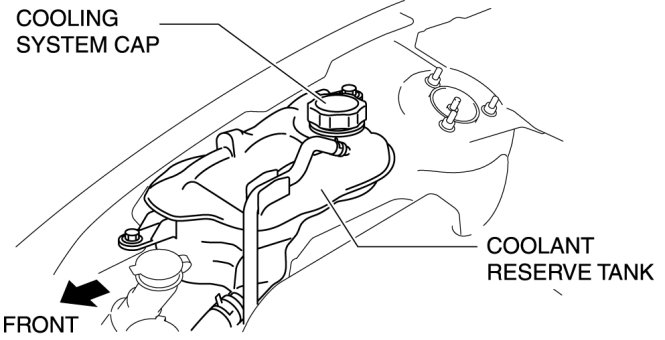 7. Refill the engine coolant into the coolant reserve tank up to the F mark on the tank.
