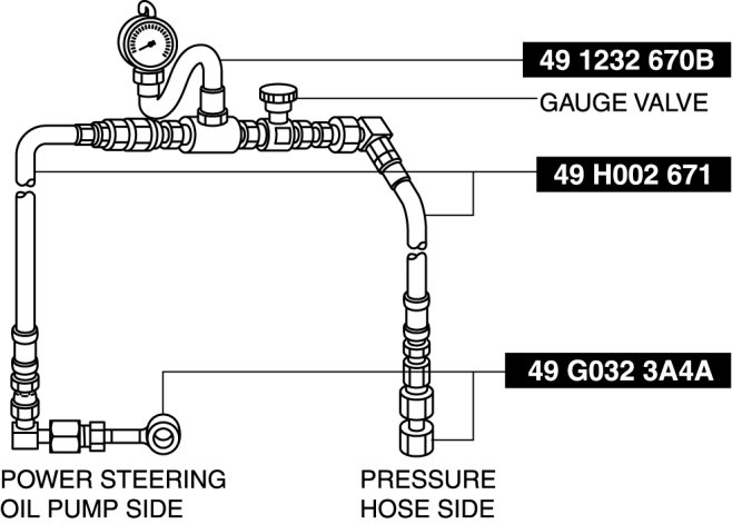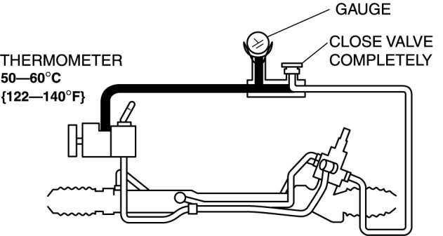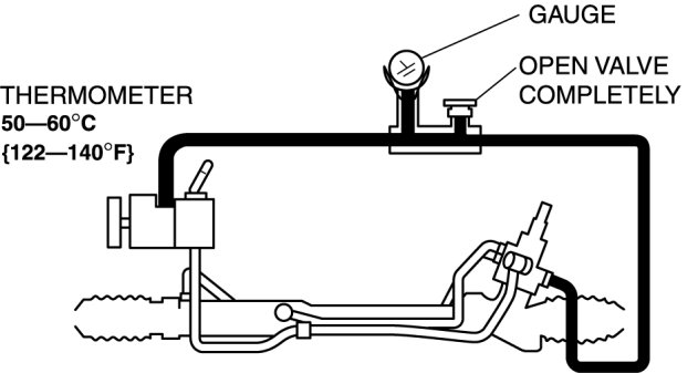10. Turn the steering wheel fully to the left and right, then measure the fluid pressure generated at the gear housing.