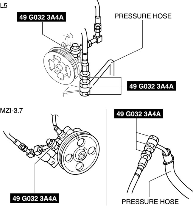 11. Remove the SSTs. Install and tighten the pressure hose to the specified torque.