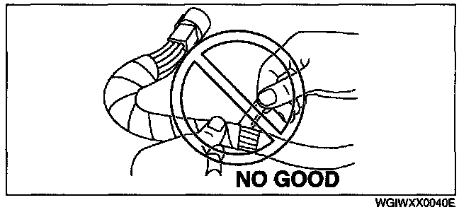 - When a tester is used to inspect for continuity or measuring voltage, insert the tester probe from the wiring harness side.