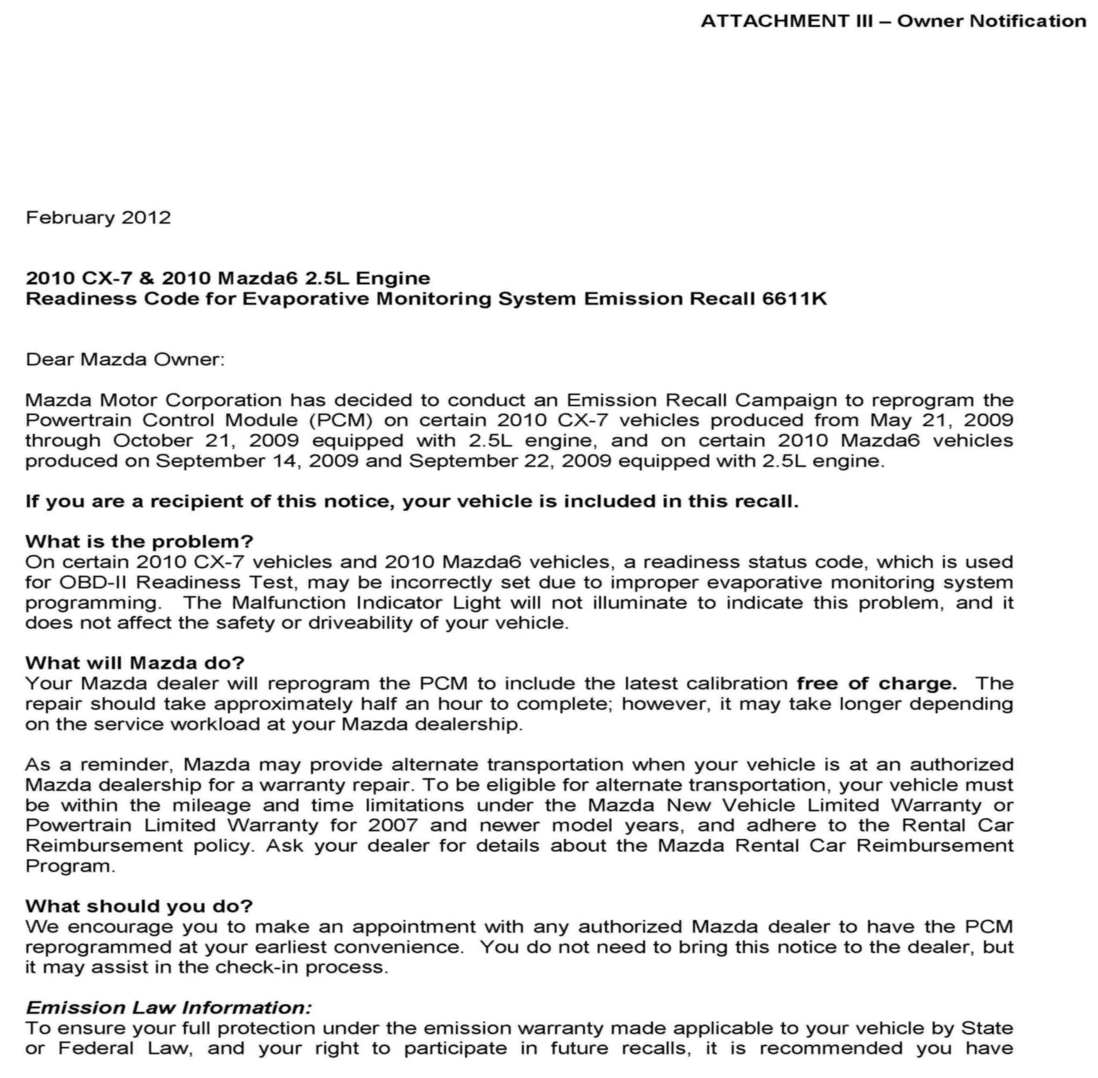 Recall 6611K - ECM Update For OBD-II Readiness
