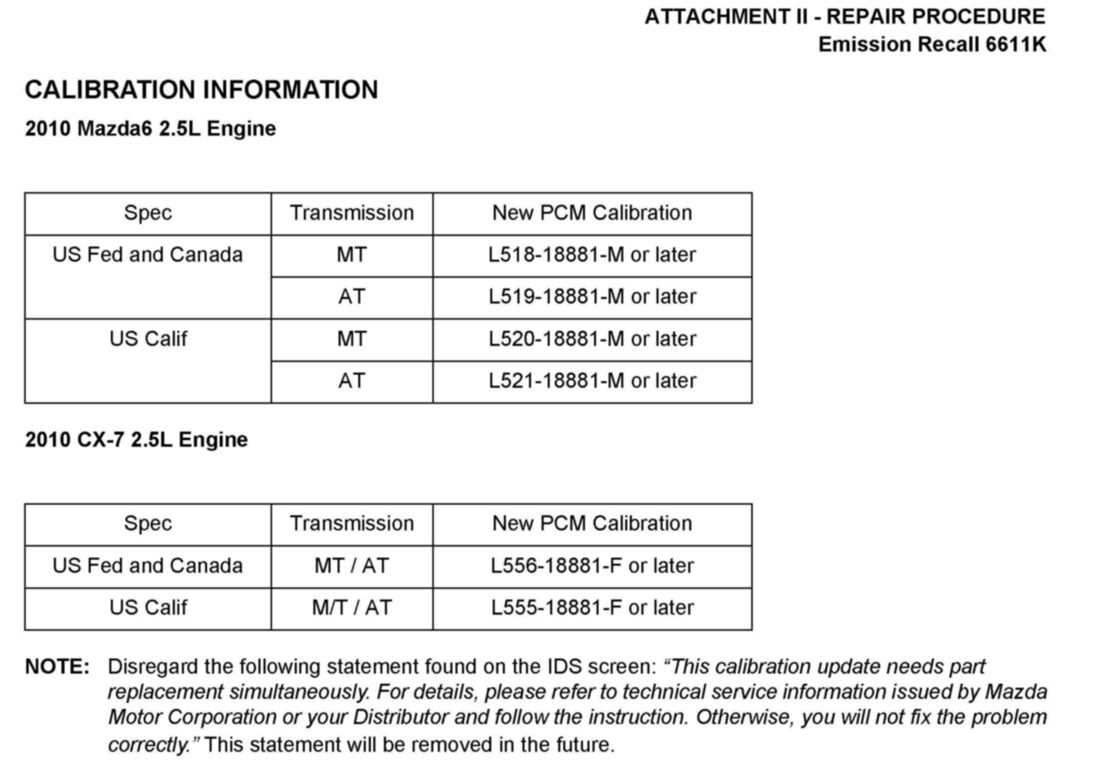 Recall 6611K - ECM Update For OBD-II Readiness