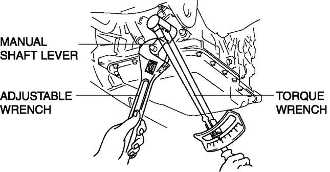 1. Set the adjustable wrench as shown to hold the manual shaft lever and tighten the manual shaft nut.
