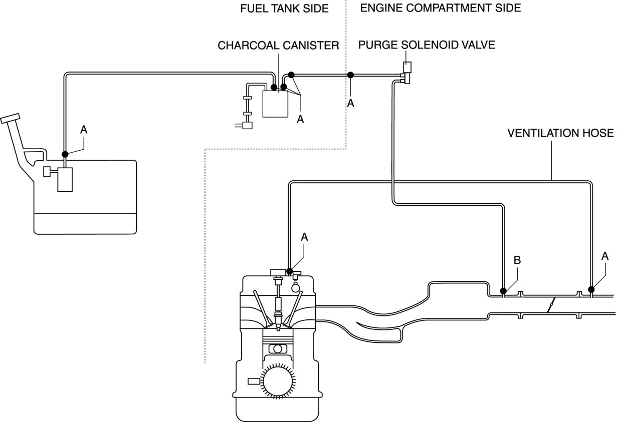 1. Inspect the evaporative hose and evaporative pipe sealing surface for damage and deformation.
