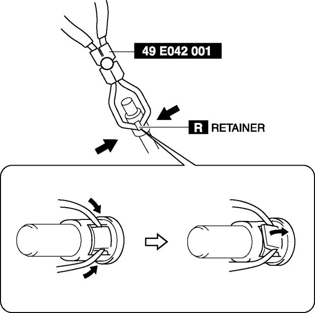 - Always replace the retainer with a new one when using SST 49 E042 001, otherwise, evaporative leakage could result.