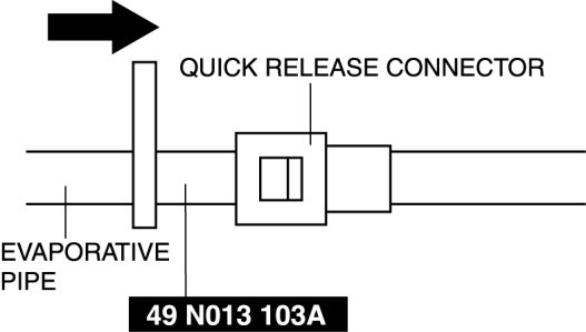 - A checker tab is integrated with the quick release connector for new evaporative hoses. Remove the checker tab from the quick release connector after the connector is completely engaged with the evaporative pipe.
