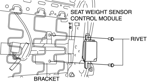 5. Remove the seat weight sensor control module installation rivets using a drill.