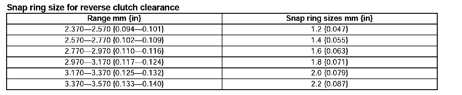 Snap ring size for reverse clutch clearance