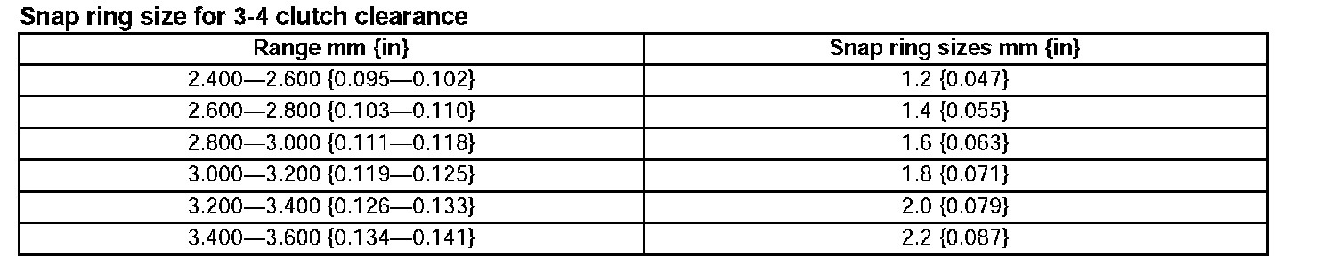 Snap ring size for 3-4 clutch clearance