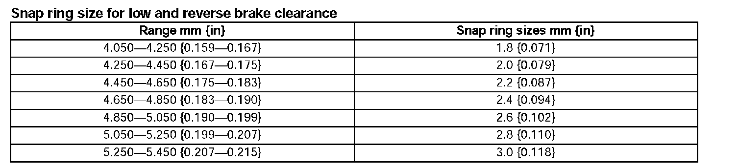 Snap ring size for low and reverse brake clearance