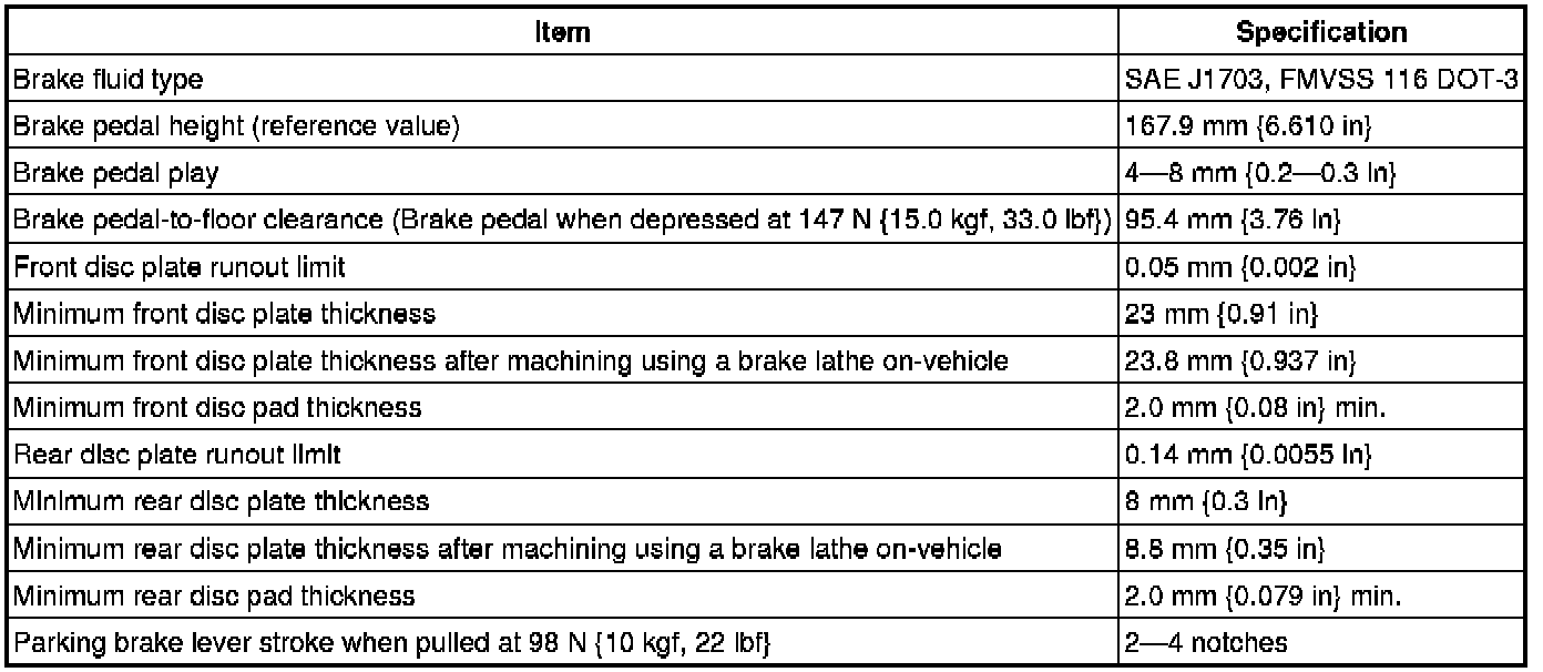 BRAKES TECHNICAL DATA