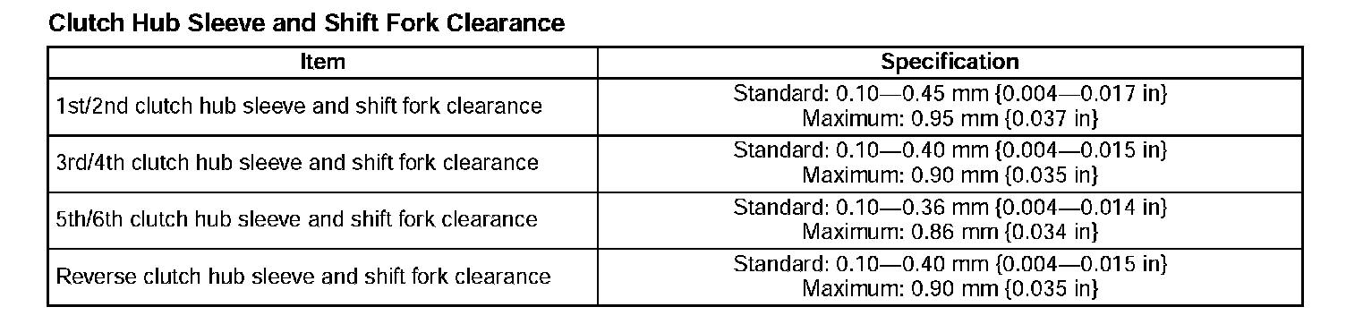 Clutch Hub Sleeve and Shift Fork Clearance