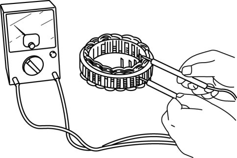 2. Verify that there is no continuity between the stator coil leads and core using a tester.