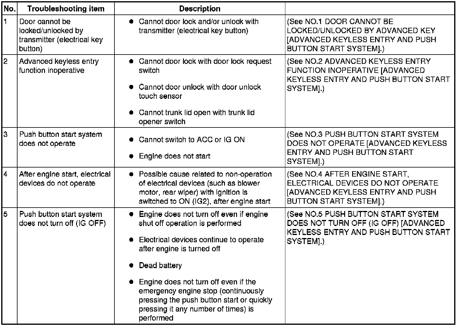 SYMPTOM TROUBLESHOOTING CHART [ADVANCED KEYLESS ENTRY AND PUSH BUTTON START SYSTEM]