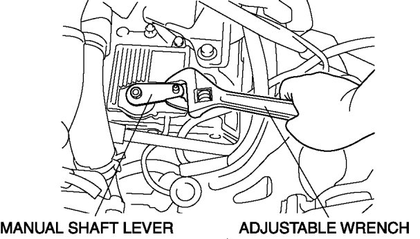 15. Set the adjustable wrench as shown in the figure to hold the manual shaft lever.