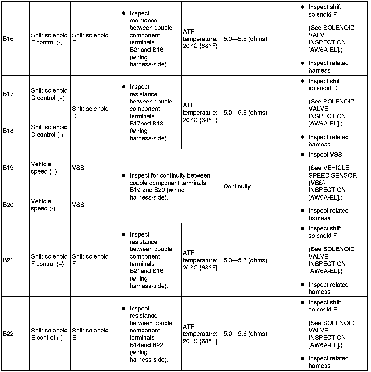 4. Verify that continuity or resistance at terminal is as indicated in the terminal continuity/resistance table.
