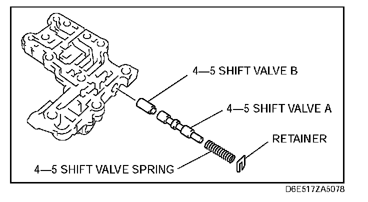 2. Install the 4-5 shift valve B, 4-5 shift valve A, 4-5 shift valve spring and retainer.