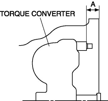 6. To ensure that the torque converter is installed accurately, measure distance A between the end of the torque converter and the end of the converter housing.