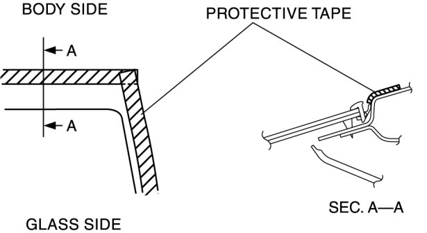 - Before removing the windshield from the body, mark the position of the windshield by affixing tape to the windshield and body panel.