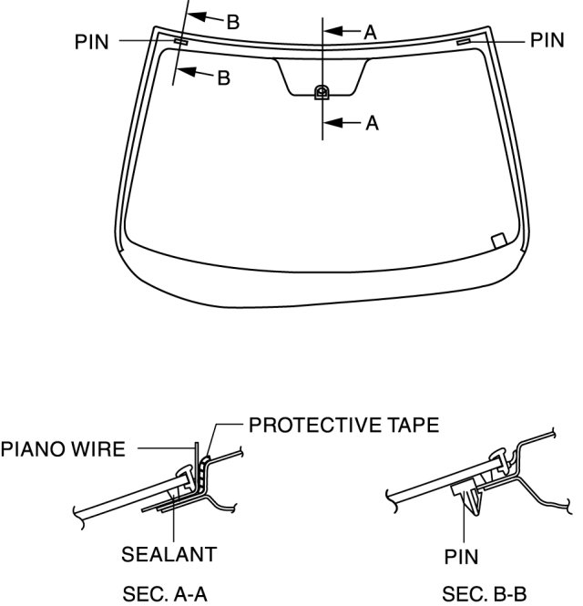 - If it is difficult to cut sealant, use piano wire and follow the procedure under "Reusing Windshield".
