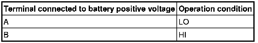6. Connect battery positive voltage to windshield wiper motor terminal A or B, and ground to terminal D, then verify that the windshield wipers operate as shown in the table.