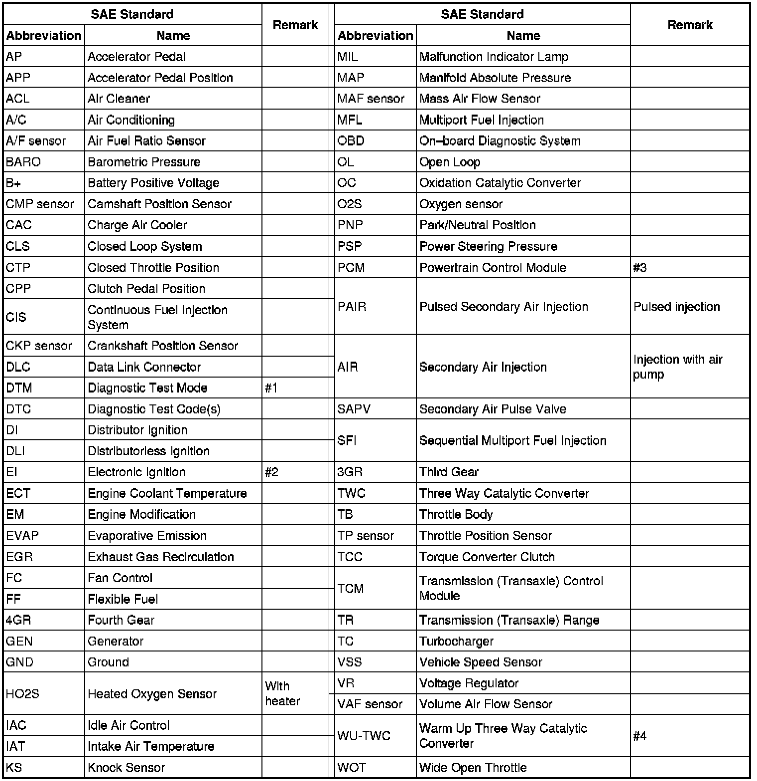 - In accordance with new regulations, SAE (Society of Automotive Engineers) standard names and abbreviations are now used. The table below lists the names and abbreviations that have been used in Mazda service information up to now and their SAE equivalents.