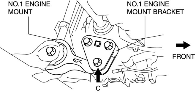 5. Tighten the No.1 engine mount bolt C.