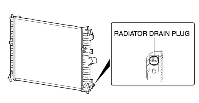 2. Loosen the radiator drain plug and drain the engine coolant into a container.