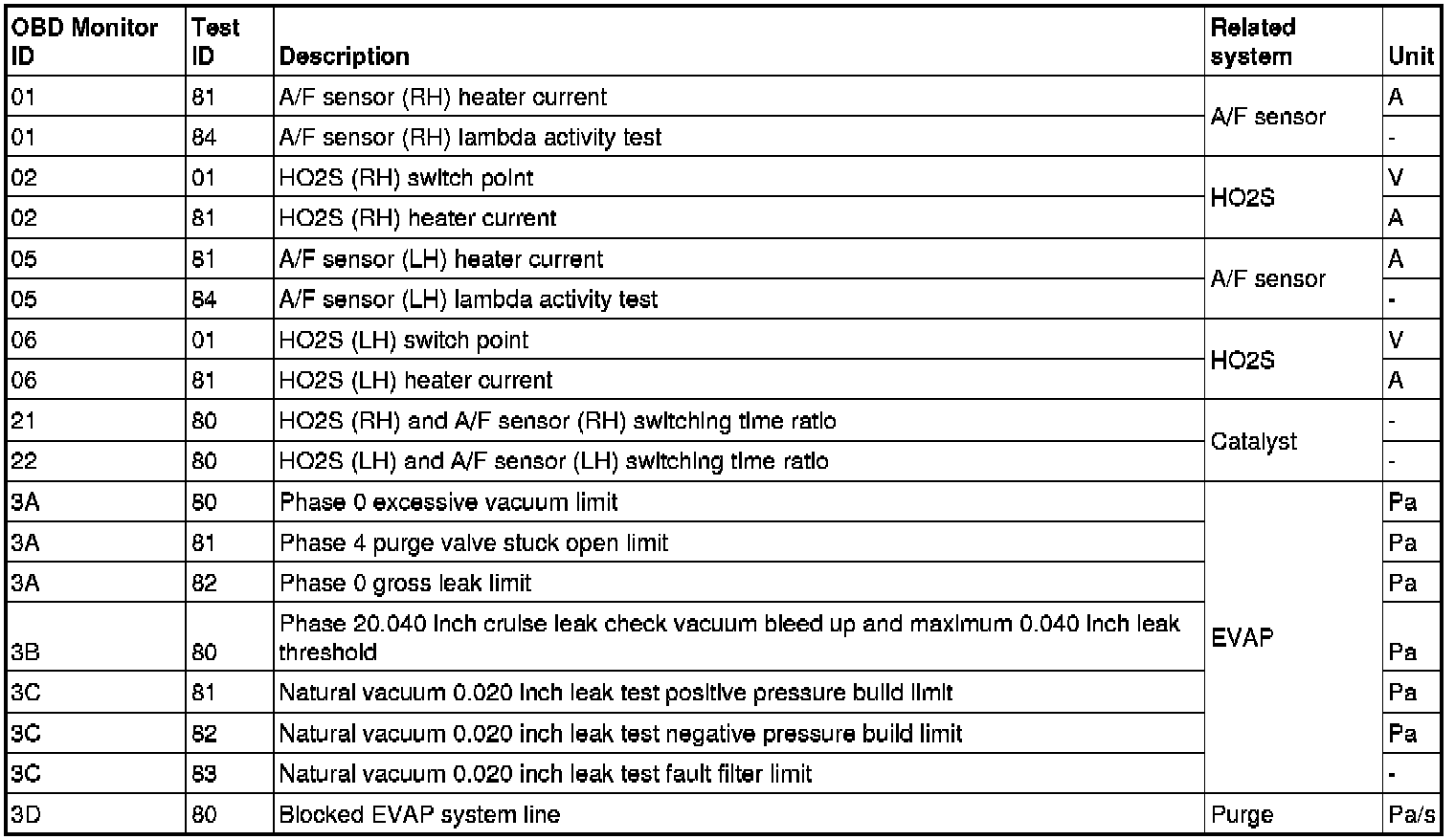 - The purpose of this test mode is to confirm the result of OBD-II monitor diagnostic test results. The result values stored when particular monitor is completed are displayed.If the monitor is not completed, initial value is displayed.