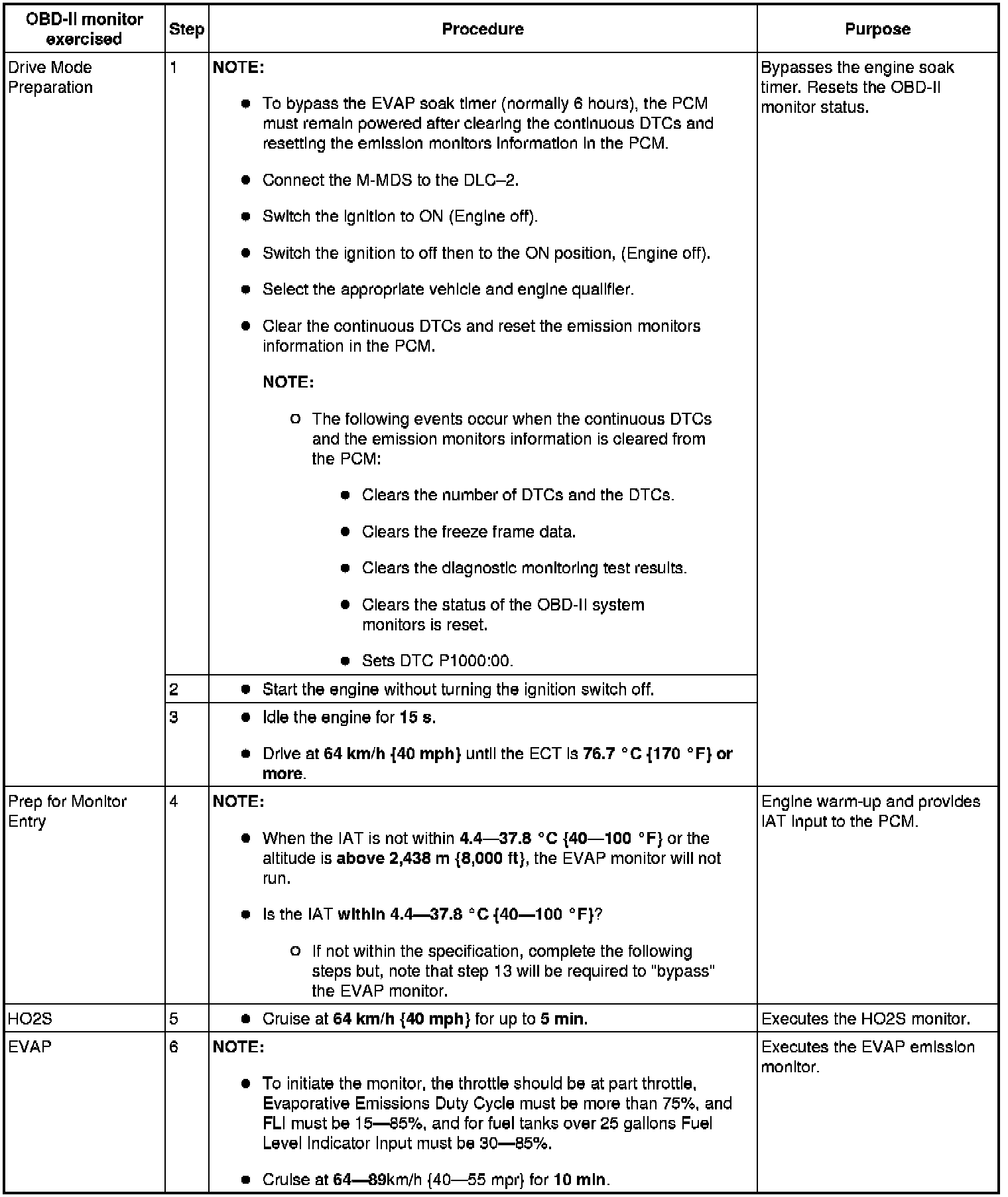 - The following procedure is designed to execute and complete the OBD-II monitors and to clear the DTC P1000:00.