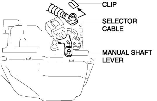 b. Remove the clip and disconnect the selector cable from manual shaft lever.