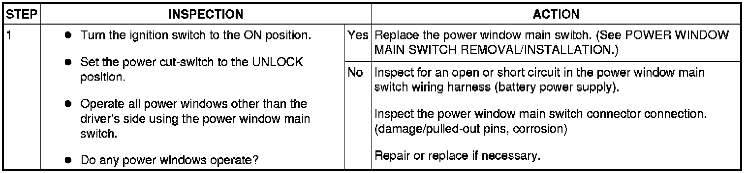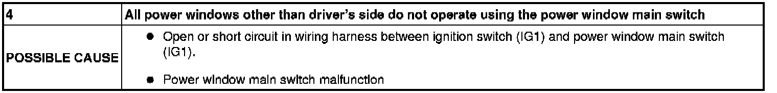 No.4 All Power Windows Other Than Driver's Side Do Not Operate Using The Power Window Main Switch - Power Window Systems