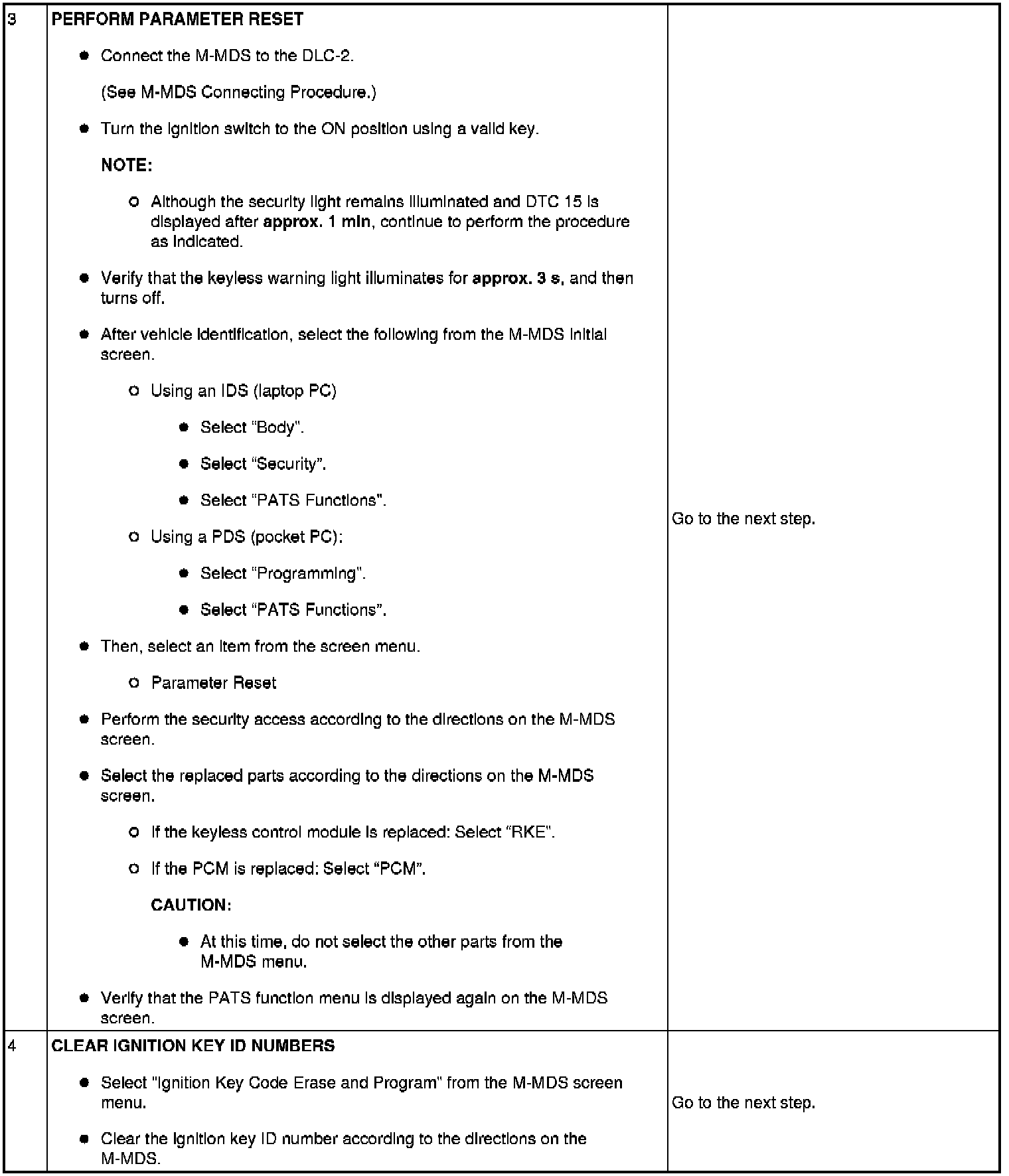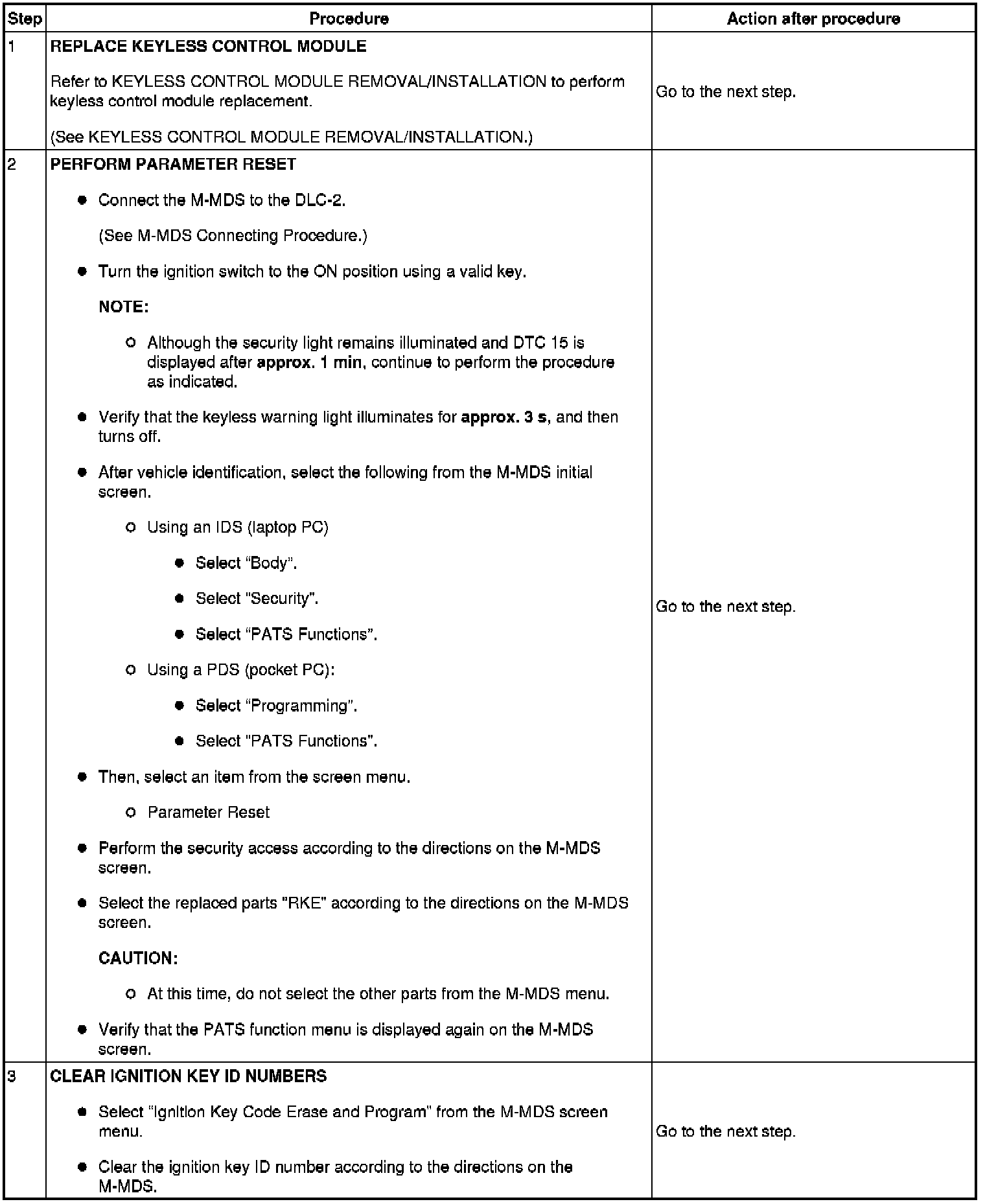 No.6 Programming Procedure Due to Simultaneous Replacement of Immobilizer System-related Parts (PCM and Keyless Control Module)