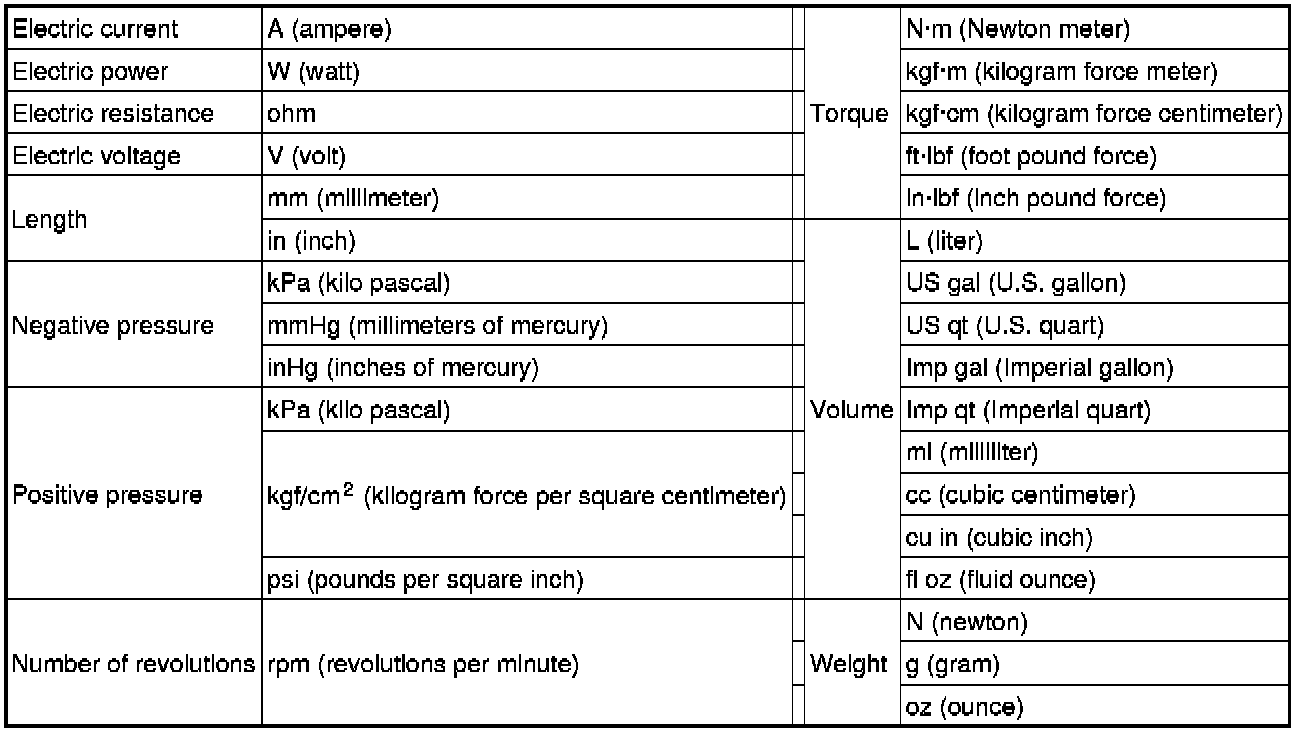 - All numerical values in this information are based on SI units. Numbers shown in conventional units are converted from these values.