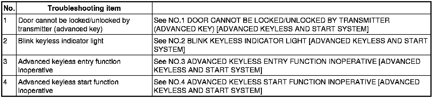 SYMPTOM TROUBLESHOOTING CHART [ADVANCED KEYLESS AND START SYSTEM]