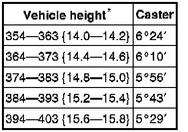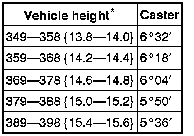- Difference between the left and right dimension for camber and caster is within 1°.