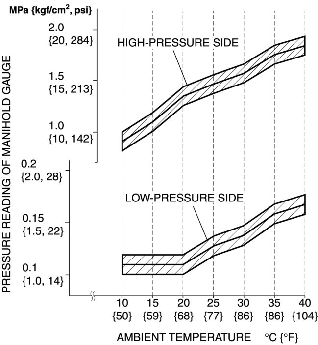 11. Verify that the high and low pressure readings are within each shaded zone.