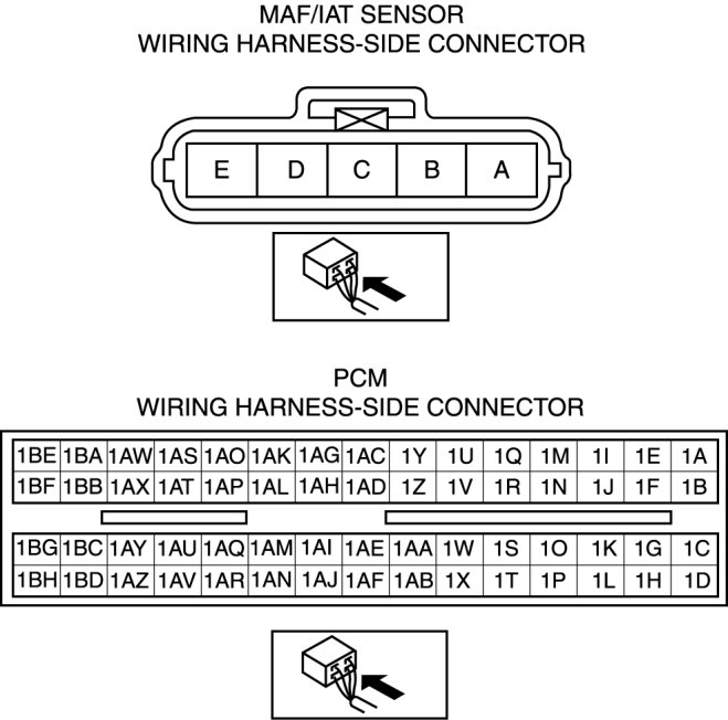 - MAF/IAT sensor terminal B and PCM terminal 1P