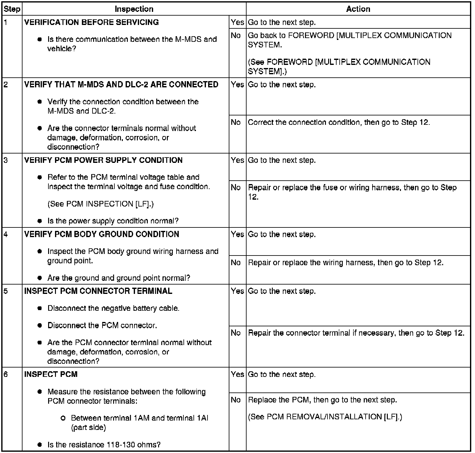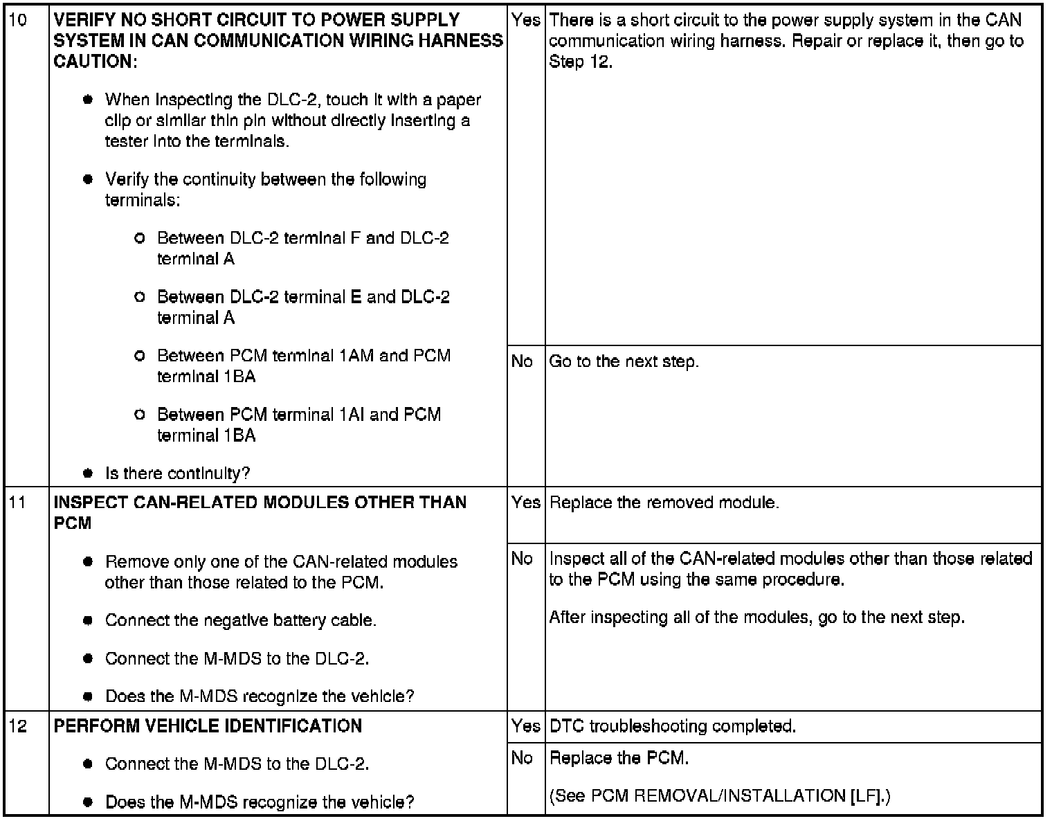 - Possible causes of communication errors between the M-MDS and vehicle include communication circuit interruption due to an open circuit in the CAN communication wiring harness, or poor contact of connector terminals, or a BUS OFF condition due to a short circuit in the CAN communication wiring harness.