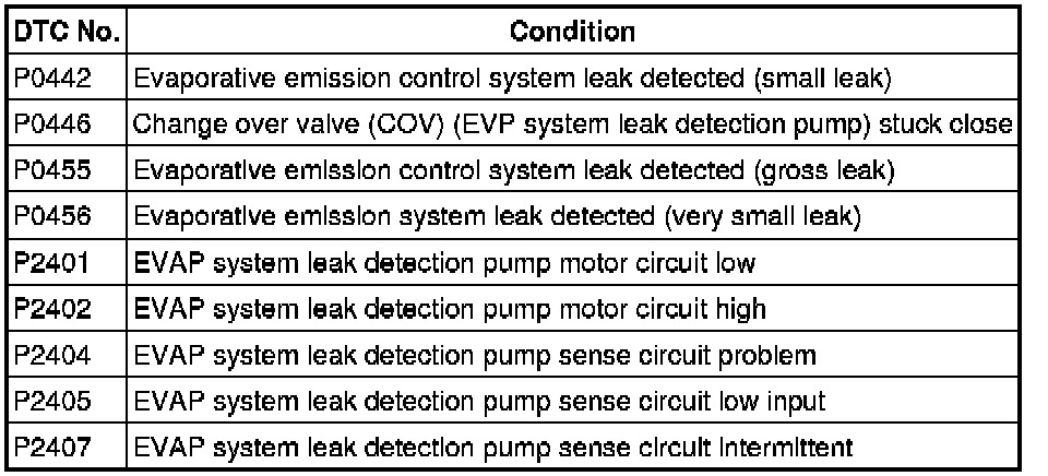 - The EVAP system test finds gas leaks in the system using the PCM to monitor changes in the air pump load current of the EVAP system leak detection pump. This test starts after sending an on-demand test signal from the M-MDS to the PCM. The PCM controls the air pump and change-over-valve operation and also stores the load current of the air pump as follows: