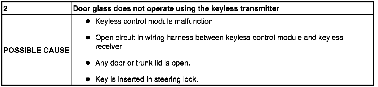 No.2 DOOR GLASS DOES NOT OPERATE USING THE KEYLESS TRANSMITTER [EXTERIOR OPEN FUNCTION]
