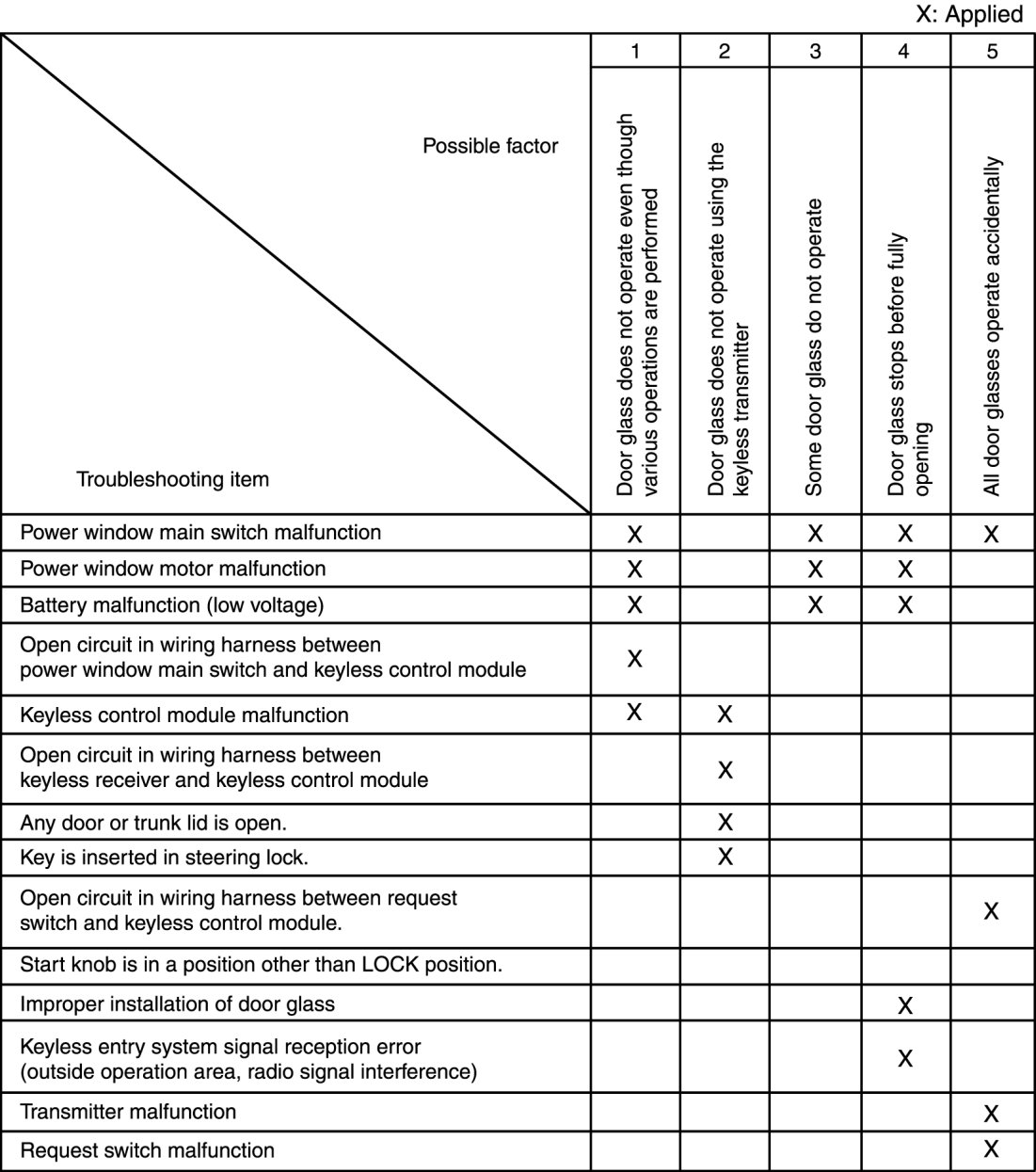 QUICK DIAGNOSTIC CHART [EXTERIOR OPEN FUNCTION]