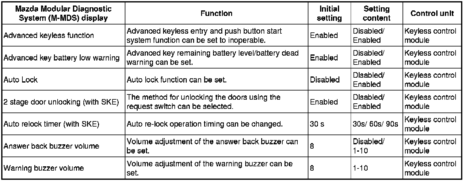 - For the keyless entry system, refer to the control system personalization features setting. Control System Personalization Features Setting Procedure