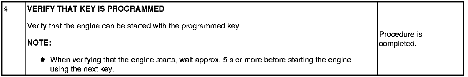 - If the engine is started during immobilizer system-related parts programming, the programming mode cancels. Therefore, do not start the engine unless indicated in the procedure. Repeat the procedure from the beginning if the engine is started during the immobilizer system-related parts programming.