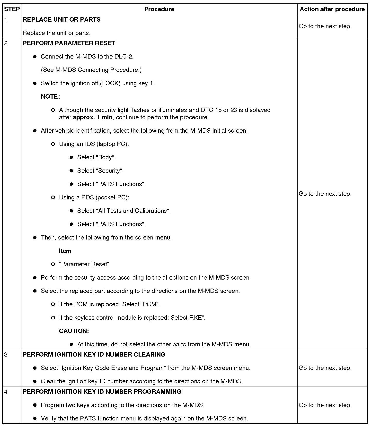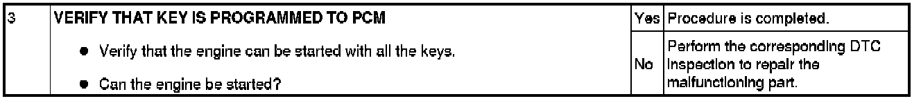 Immobilizer System-Related Parts Service and Programming Procedure Table