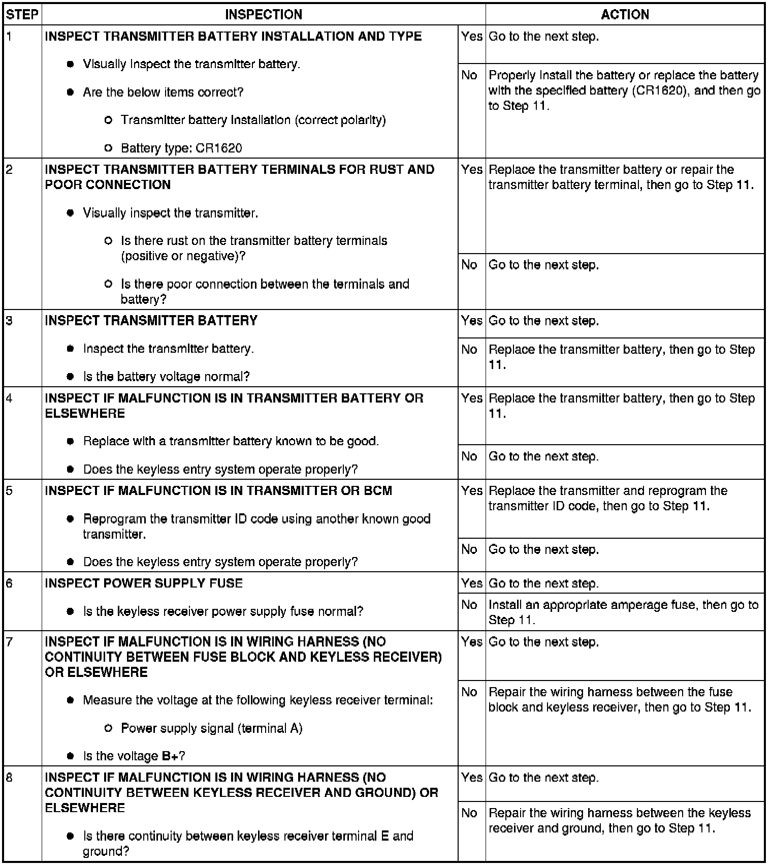No.3 Transmitter ID Code Cannot Be Reprogrammed - Keyless Entry System