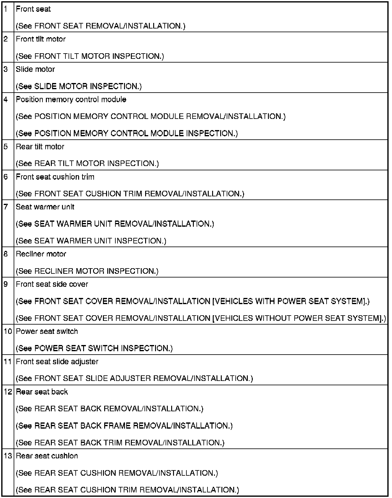 SEATS LOCATION INDEX