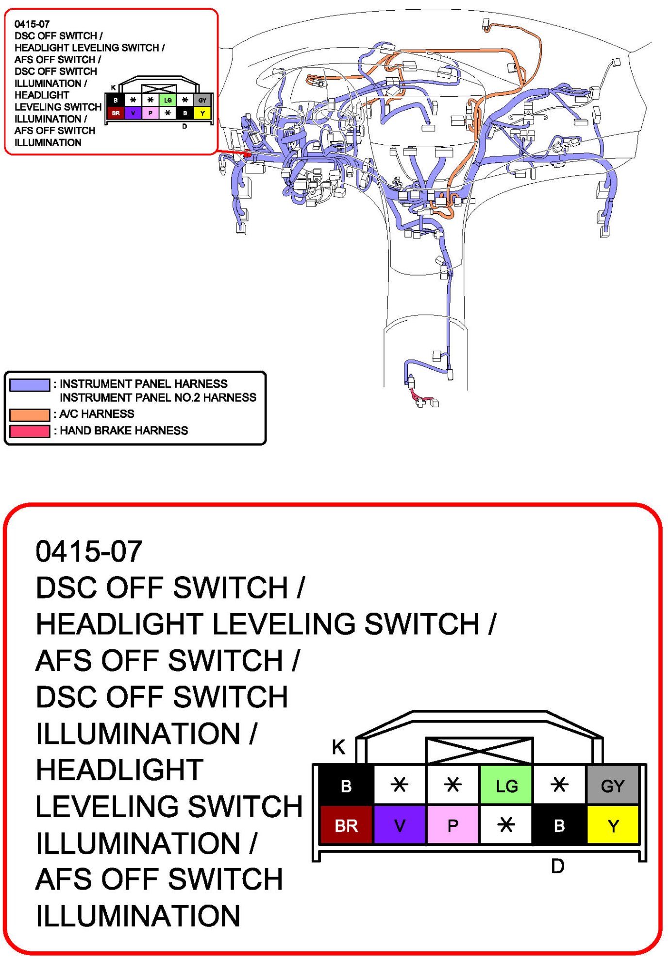 DSC OFF Switch / Headlight Leveling Switch / AFS OFF Switch / DSC OFF Switch Illumination / Headlight Leveling Switch Illumination / AFS OFF Switch Illumination: