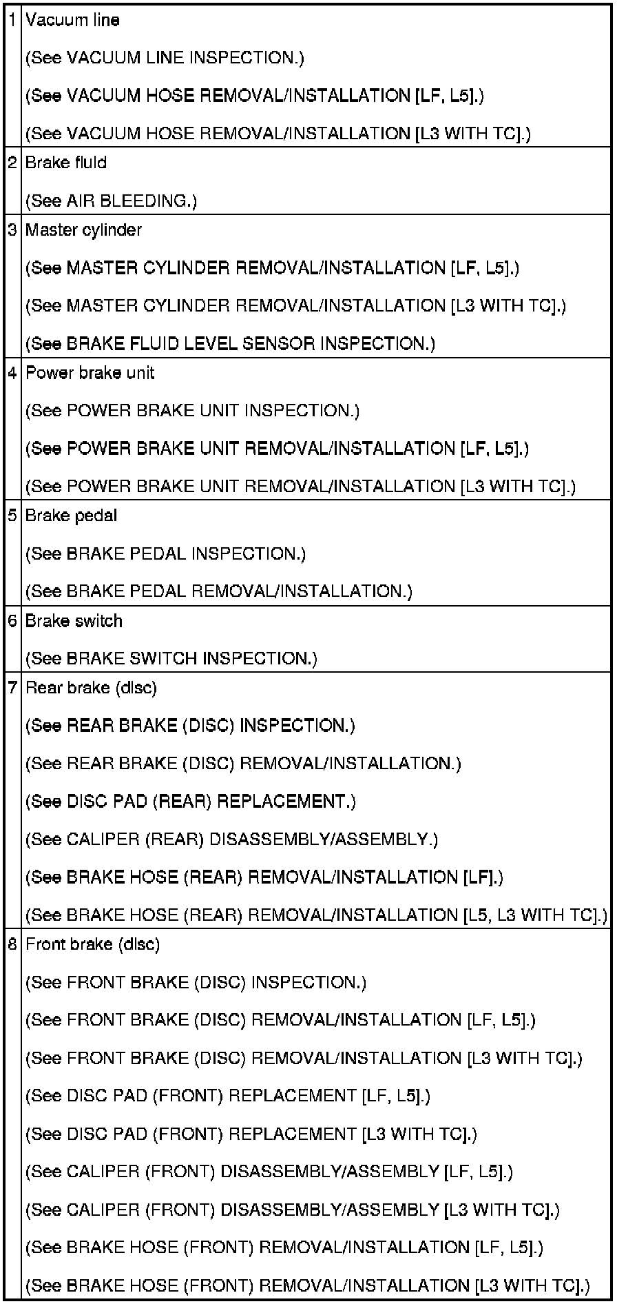 CONVENTIONAL BRAKE SYSTEM LOCATION INDEX