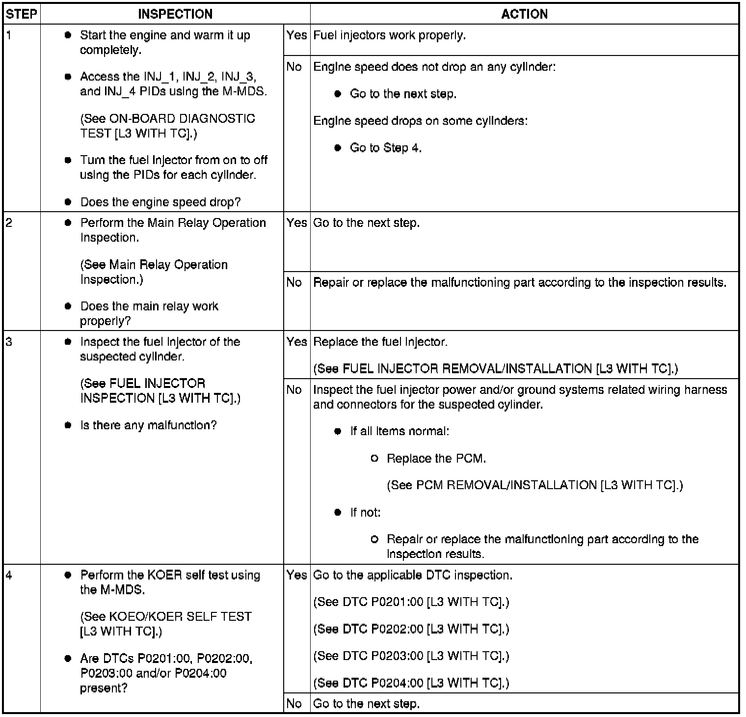 - This inspection has to be performed after the Fuel Injector Operation Inspection.